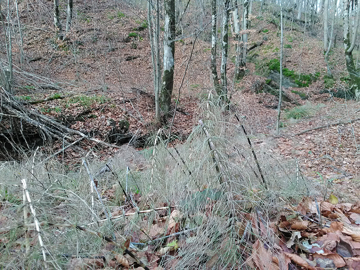 Спускаемся в глубокое ущелье около Неберджая, тут все засыпано буковыми орешками, орешками клекачки перистой (джонджоли), много боярышника и шиповника. Можно собрать охапку листьев земляники и ежевики на ароматный чай. Грибы в декабре тоже еще есть, грузди.